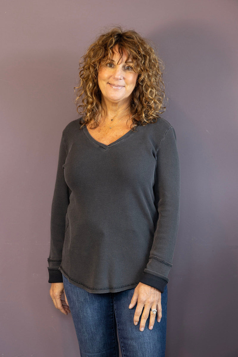 Escape by Habitat V-Neck Hi-Lo Waffle Knit Top