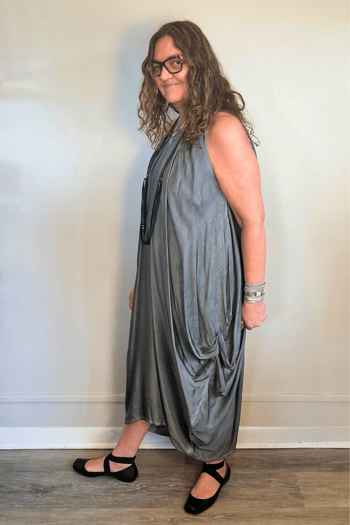Amici by Baci Sleeveless Linen Balloon Crop Shirt