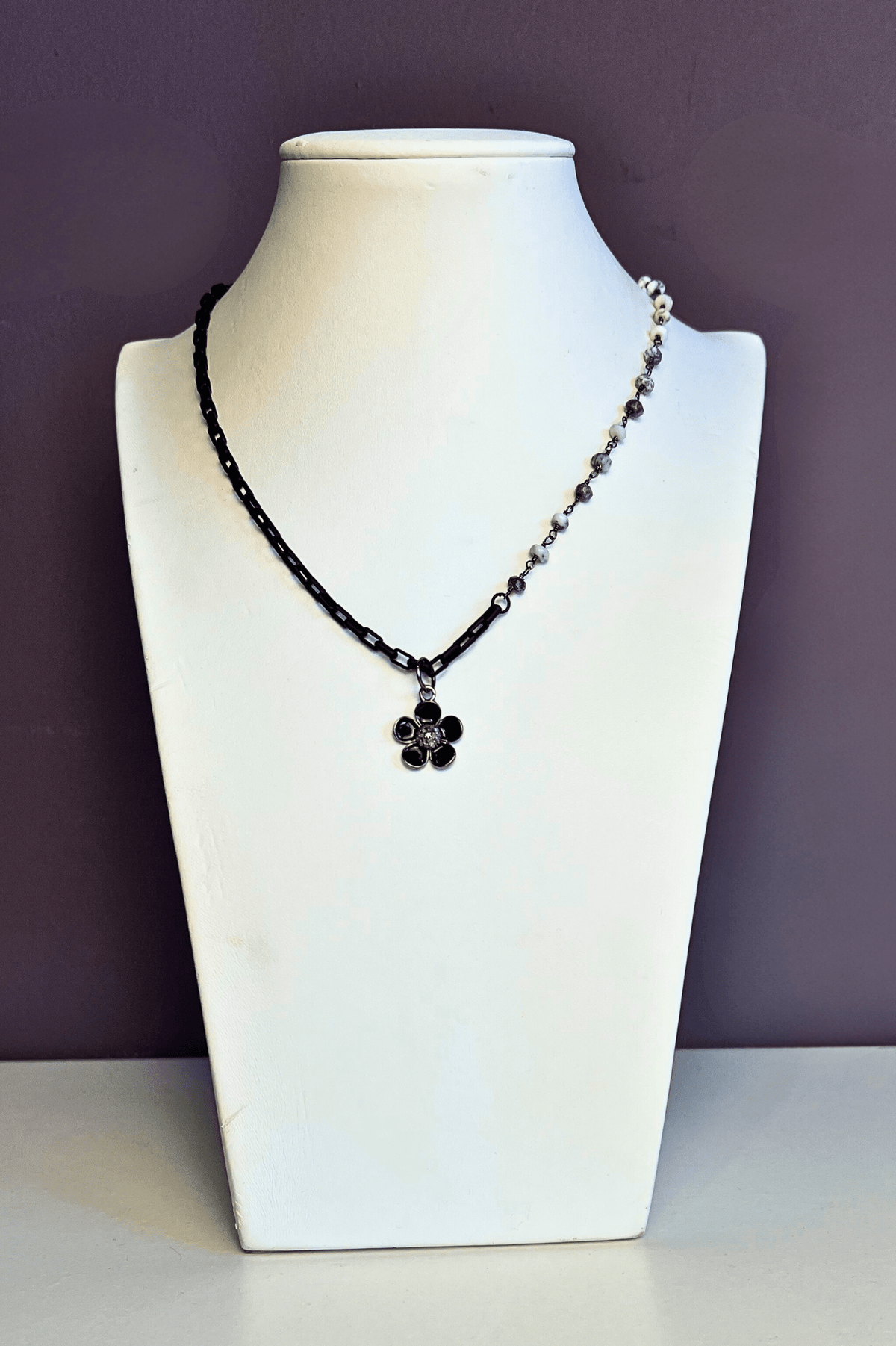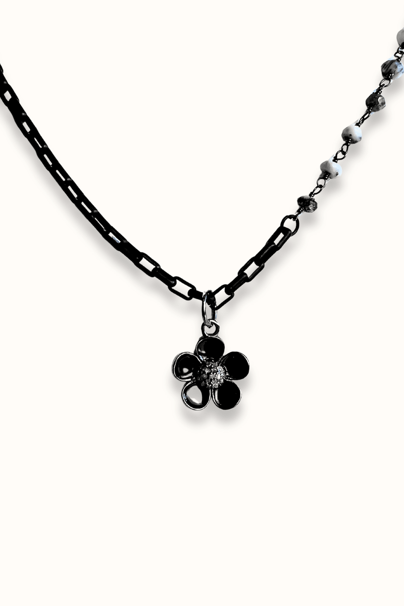 CB Designs Layered Chain Onyx Flower Necklace