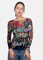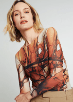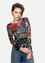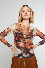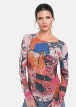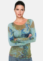 Ultra soft long sleeve semi sheer top by AMB Designs with banded scoop neck. Essential layering top!